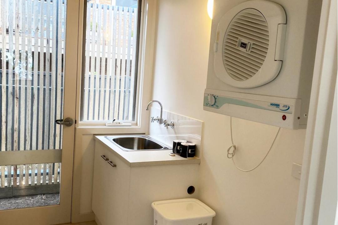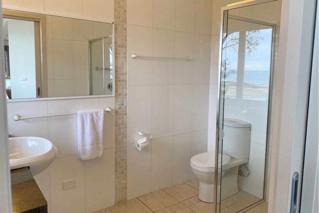The house has a large bathroom with double vanity, two showers, a spa bath and toilet. The design of this bathroom enables each facility to be used simultaneously. There is a second toilet off the laundry near the living space and the master ensuite, downstairs, consists of a free standing shower, toilet and vanity