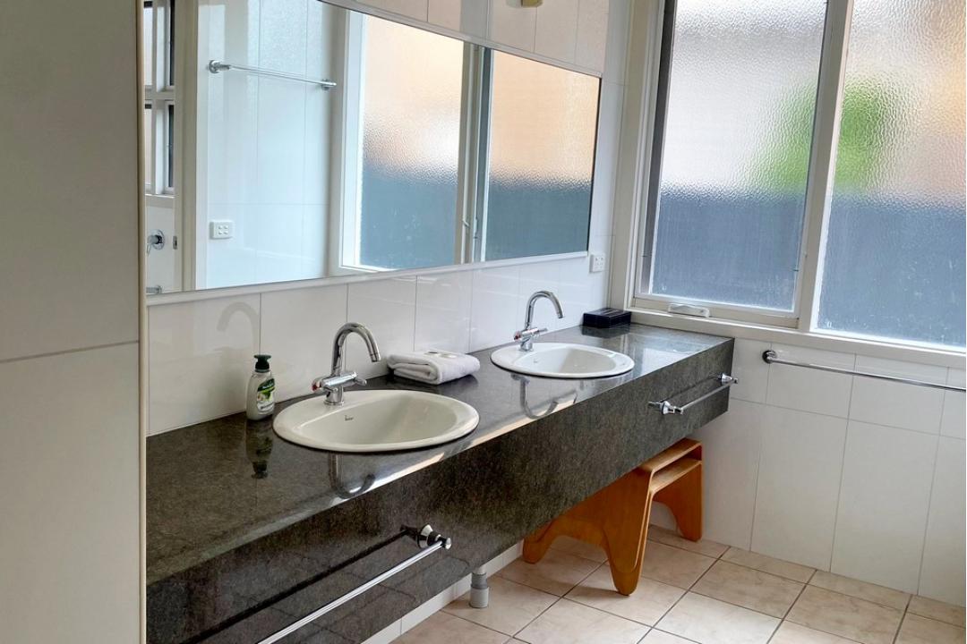 The house has a large bathroom with double vanity, two showers, a spa bath and toilet. The design of this bathroom enables each facility to be used simultaneously. There is a second toilet off the laundry near the living space and the master ensuite, downstairs, consists of a free standing shower, toilet and vanity